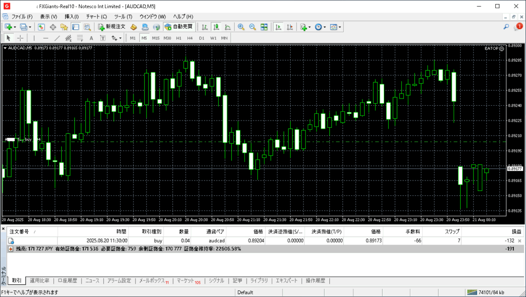 昨日のEATOPトレード結果:2025年8月20日(水)