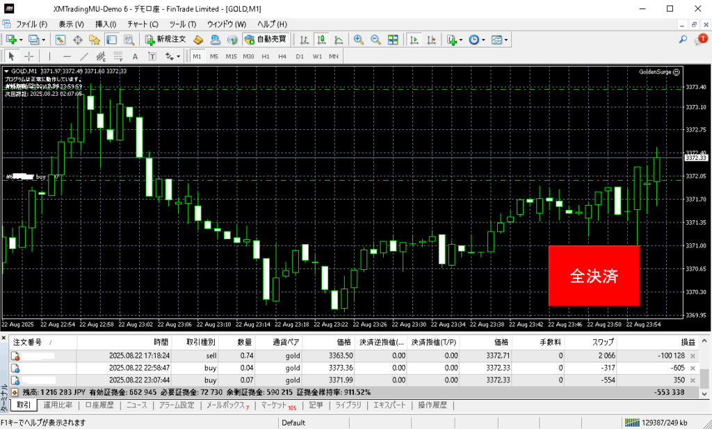 本日のGoldenSurgeトレード開始:2025年8月25日(月)デモトレード