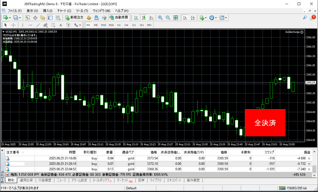 GoldenSurgeトレード結果:2025年8月26日(火)デモトレード