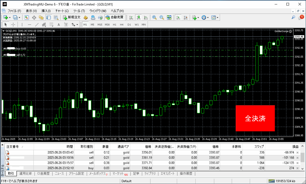 GoldenSurgeトレード結果:2025年8月26日(火)デモトレード
