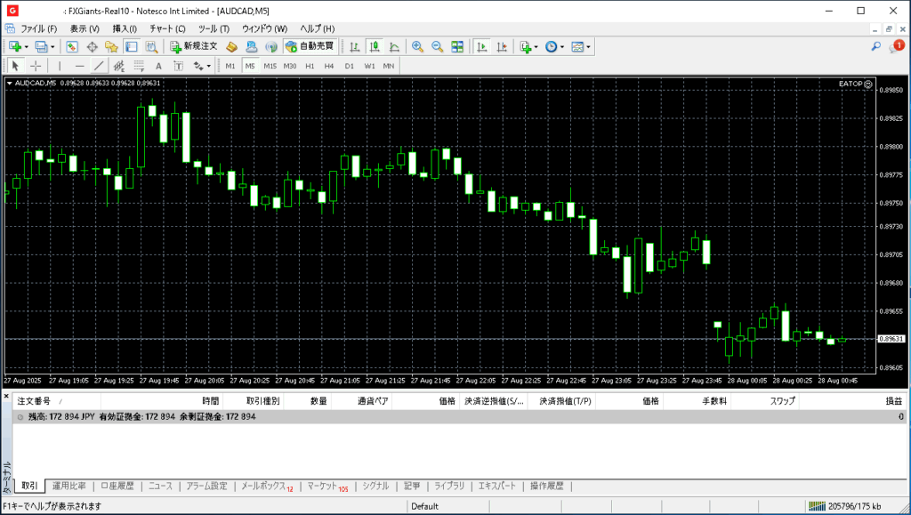 EATOPトレード開始:2025年8月15日(金) 有料EA「EATOP」で自動売買して、日々の資産推移の数値をライフログとして残していきます。 実はすでに7月から開始していて、15万…