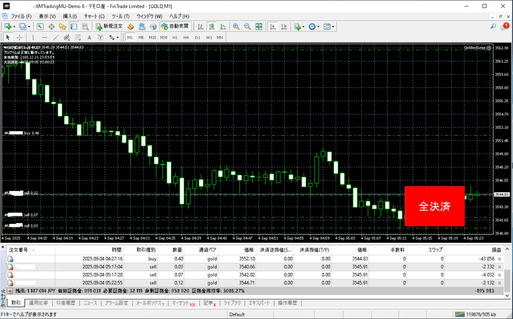 GoldenSurgeトレード結果:2025年9月3日(水)デモトレード