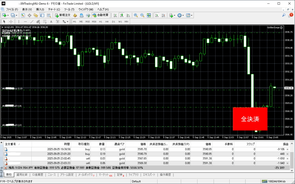 GoldenSurgeトレード結果:2025年9月5日(金)デモトレード