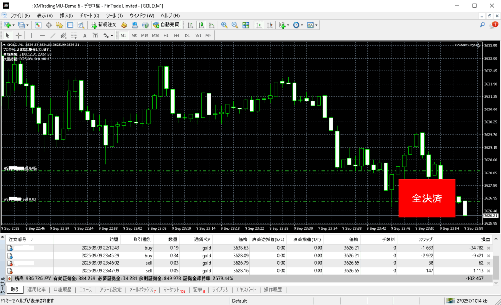 GoldenSurgeトレードの結果:2025年9月9日(火)デモトレード