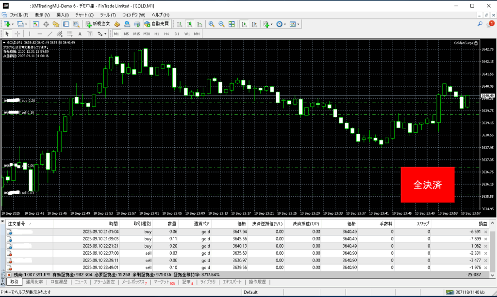 GoldenSurgeトレードの結果:2025年9月10日(水)デモトレード