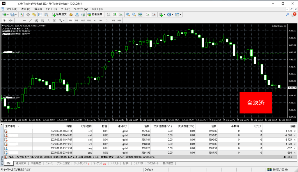 昨日「Golden Surge(Rapid Gain)」トレード結果:2025年9月17日(火)