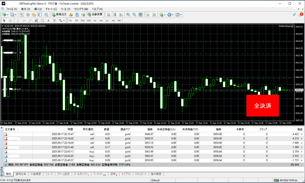 昨日のGoldenSurgeトレード結果:2025年9月17日(水)デモトレード