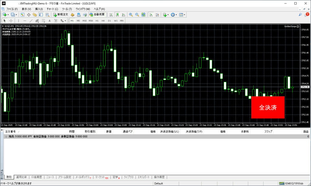 昨日のGoldenSurgeトレード結果:2025年9月23日(火)デモトレード
