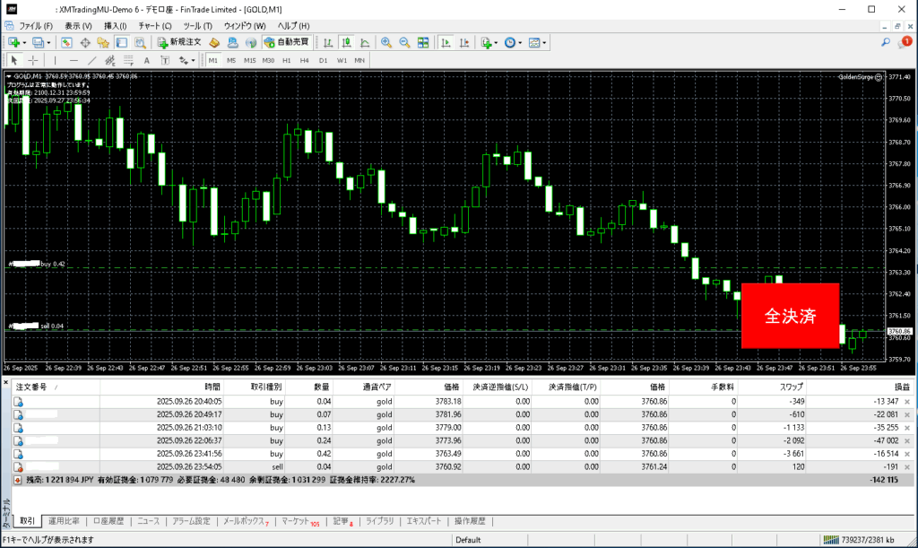 昨日のGoldenSurgeトレード結果:2025年9月26日(金)デモトレード