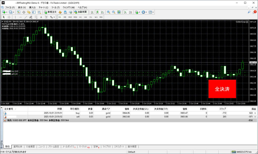 昨日のGoldenSurgeトレード結果:2025年10月1日(水)デモトレード