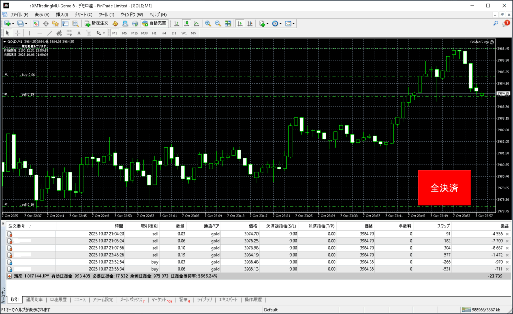 昨日のGoldenSurgeトレード結果:2025年10月7日(火)デモトレード