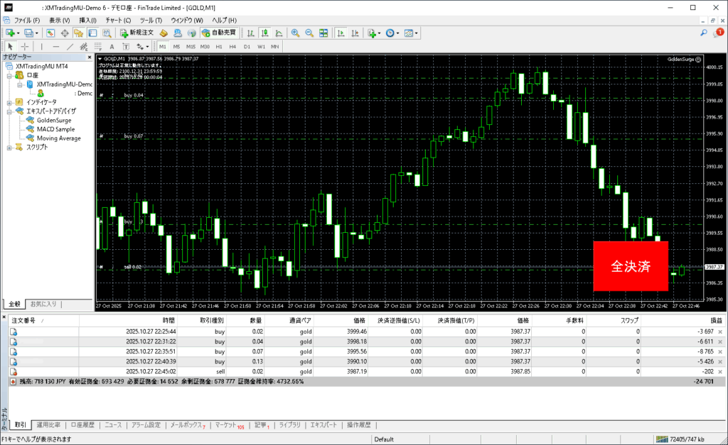 昨日のGoldenSurgeトレード結果:2025年10月27日(月)デモトレード