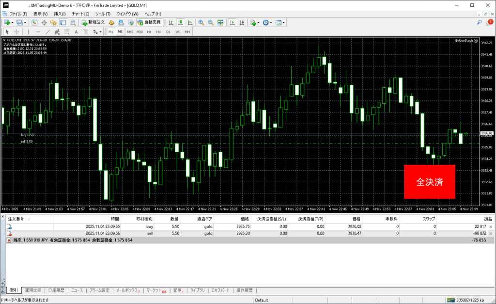 昨日のGoldenSurgeトレード結果:2025年11月4日(火)デモトレード