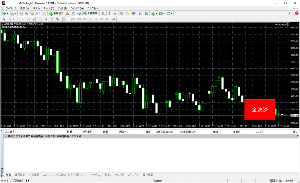 昨日のGoldenSurgeトレード結果:2025年11月6日(木)デモトレード