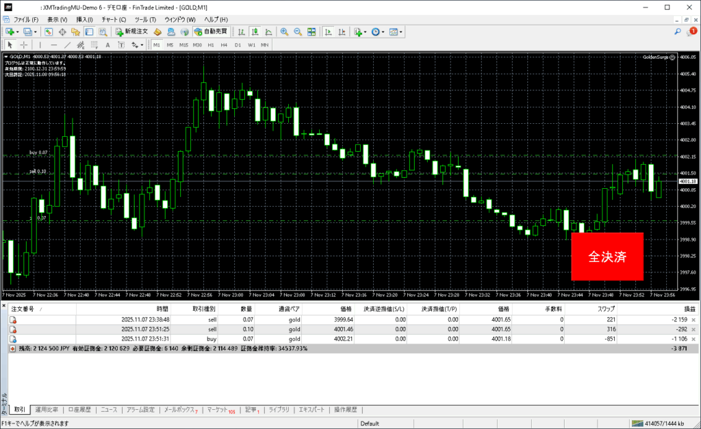 本日GoldenSurgeトレード開始:2025年11月10日(月)デモトレード