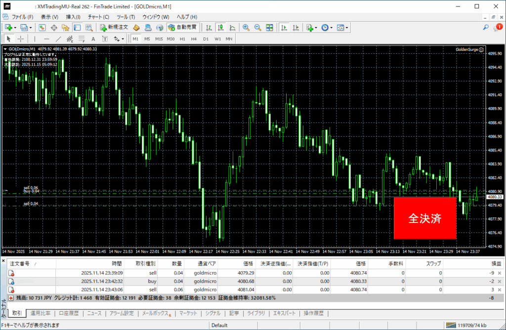 昨日の「Golden Surge(Micro口座)」トレード結果:2025年11月14日(金)