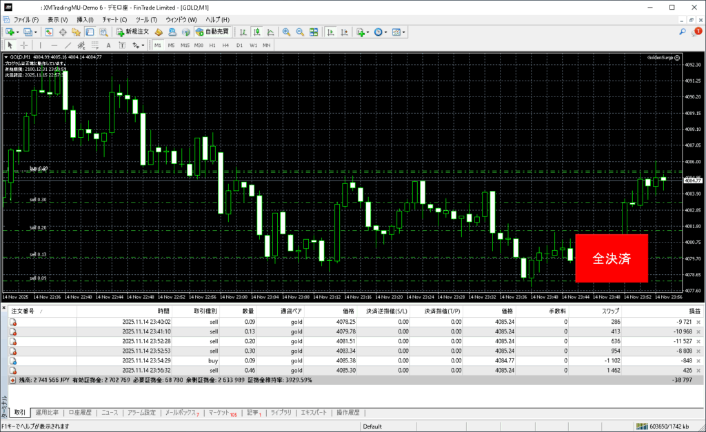 本日GoldenSurgeトレード開始:2025年11月17日(月)デモトレード