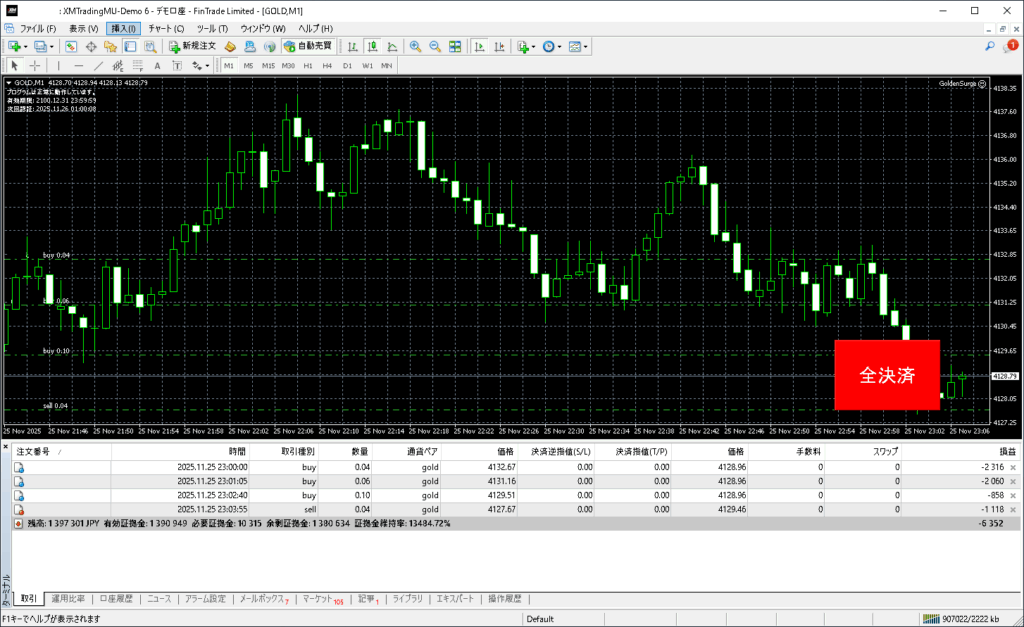 昨日のGoldenSurgeトレード結果:2025年11月25日(火)デモトレード