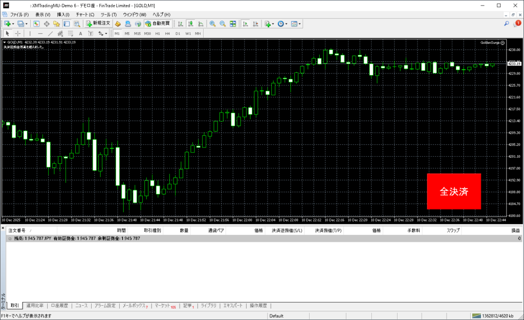 昨日のGolden Surgeトレード結果:2025年12月10日(水)デモトレード