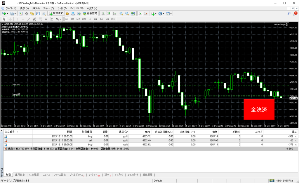 昨日のGolden Surgeトレード結果:2025年12月15日(月)デモトレード