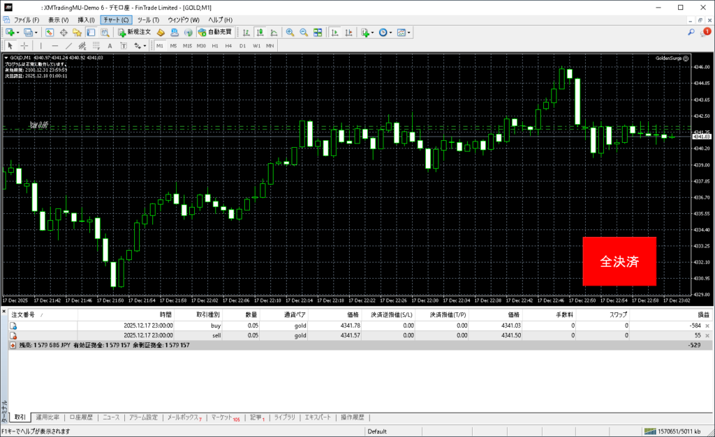 昨日のGolden Surgeトレード結果:2025年12月17日(水)デモトレード
