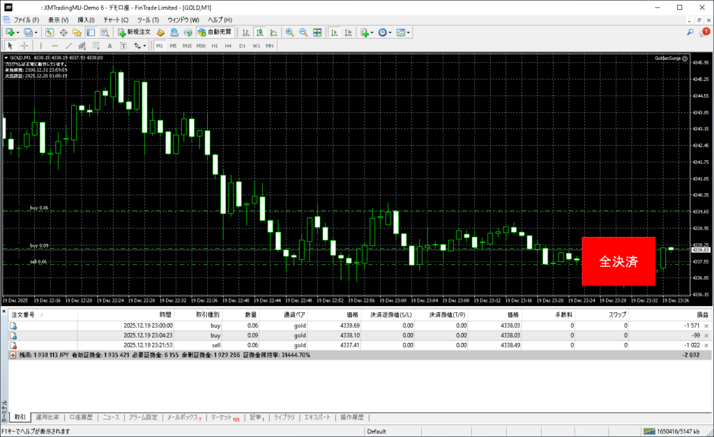 昨日のGolden Surgeトレード結果:2025年12月19日(金)デモトレード