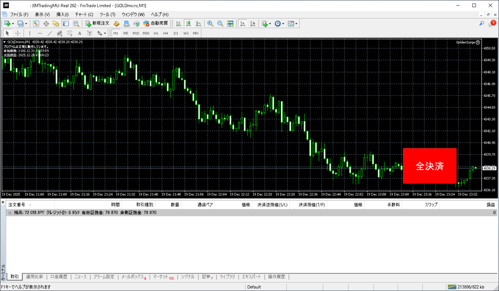昨日の「Golden Surge(Micro口座)」トレード結果:2025年12月19日(金)