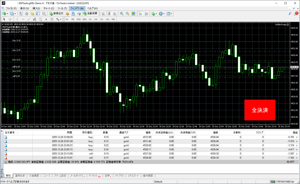 昨日のGolden Surgeトレード結果:2025年12月26日(金)デモトレード