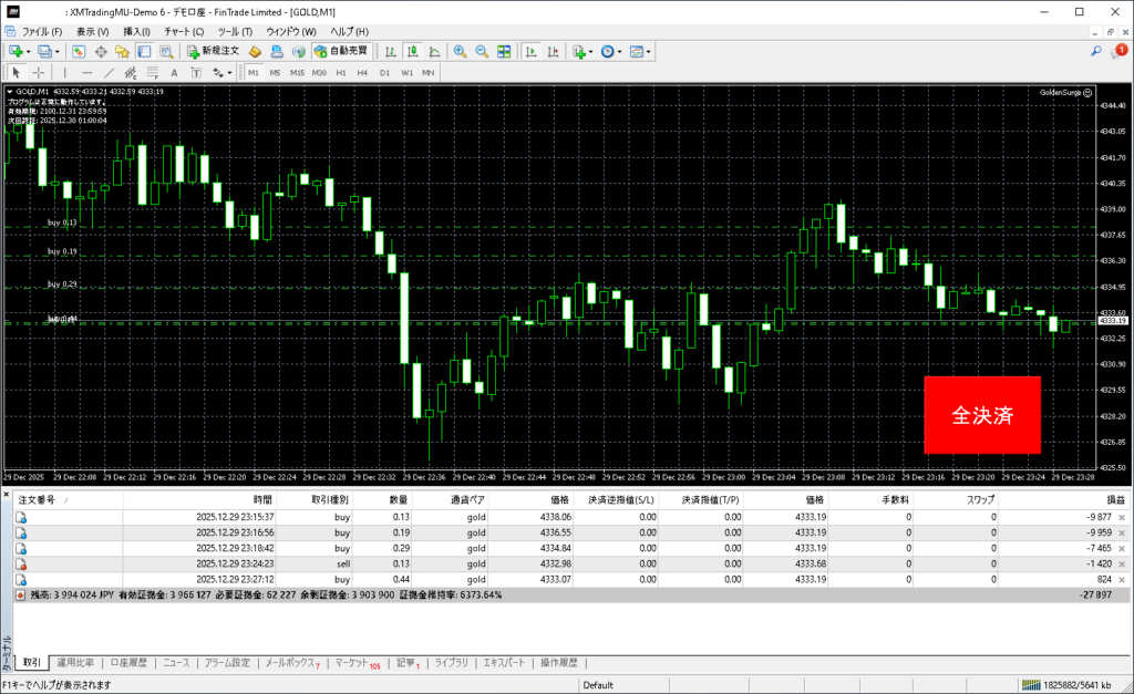 昨日のGolden Surgeトレード結果:2025年12月29日(月)デモトレード