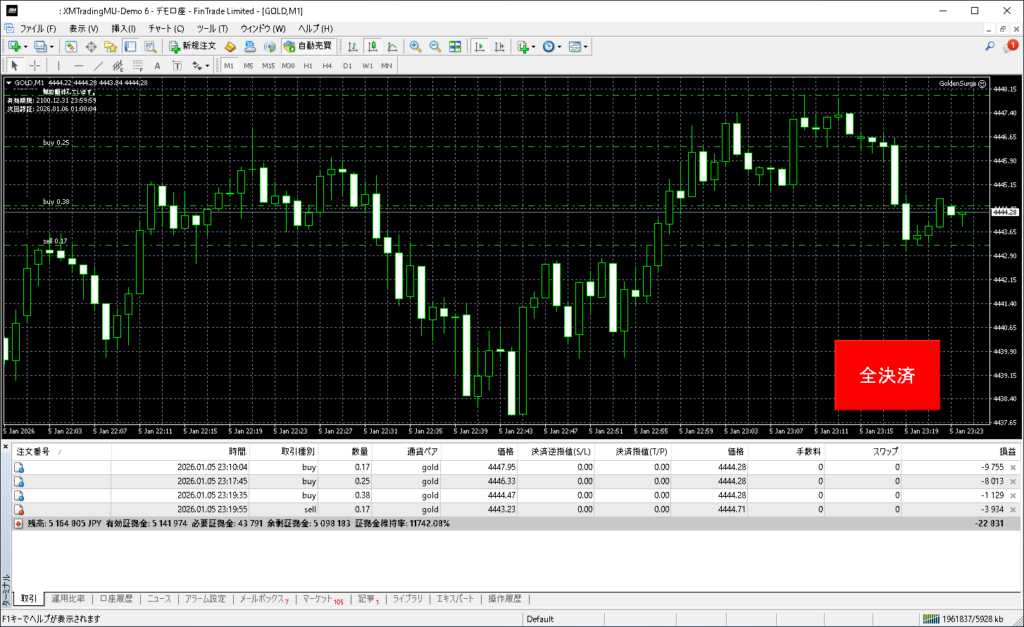 昨日のGolden Surgeトレード結果:2026年1月5日(月)デモトレード