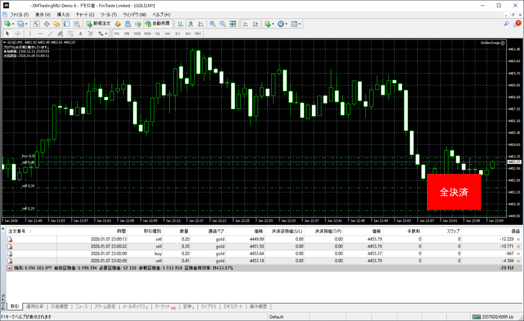 昨日のGolden Surgeトレード結果:2026年1月7日(水)デモトレード