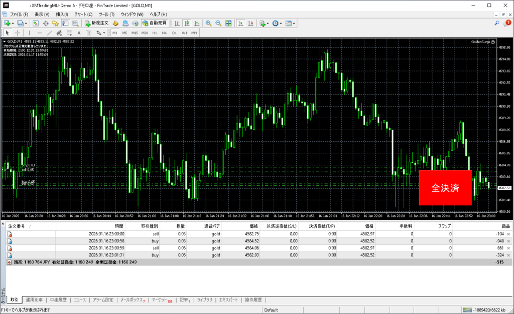 昨日のGolden Surgeトレード結果:2026年1月16日(金)デモトレード