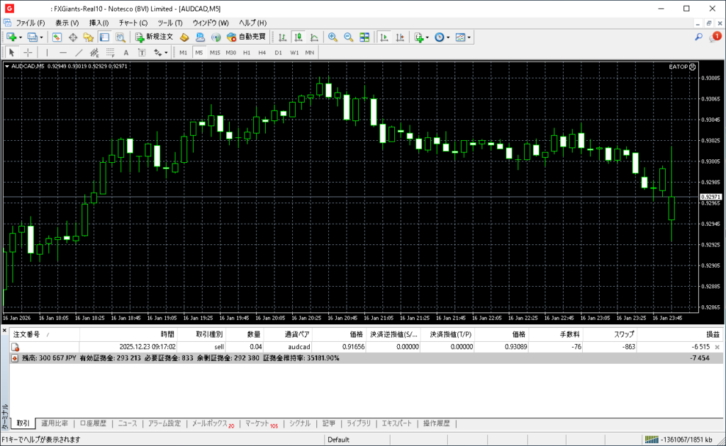 有料EA「EATOP」やってみた:第130日 2026 1/19 広告 【実践】EATOPトレード記録 2026年1月19日 目次本日EATOPトレード開始:2026年1月19日(月) カナダの正式名称は、Canadaです。共和国などはつきません。 EATOPは、破綻もなく安定して少しずつ利益を積み上げる自動売買EAです。 現在、トレードは1件走っています。 また動きが止まりました。 口座残高:300,667円 前日(1月16日)との差額 0円 当初からの差額:+29,499円 長期でほったらかしで利益を積み上げる戦略です。 EATOP(エアトップ)・販売成果 【実践】EATOPトレード記録 EATOP トレード記録 自動売買 よかったらシェアしてね! URLをコピーしました! URLをコピーしました! 有料EA「Golden Surge」やってみた:デモ第4日(再開5) 有料EA「Golden Surge」やってみた:デモ第5日(再開5) この記事を書いた人 むらくも健 関連記事 有料EA「EATOP」やってみた:第166日 2026年3月2日 有料EA「EATOP」やってみた:第165日 2026年2月28日 有料EA「EATOP」やってみた:第164日 2026年2月27日 有料EA「EATOP」やってみた:第163日 2026年2月26日 有料EA「EATOP」やってみた:第162日 2026年2月25日 有料EA「EATOP」やってみた:第161日 2026年2月24日 有料EA「EATOP」やってみた:第160日 2026年2月23日 有料EA「EATOP」やってみた:第159日 2026年2月21日
