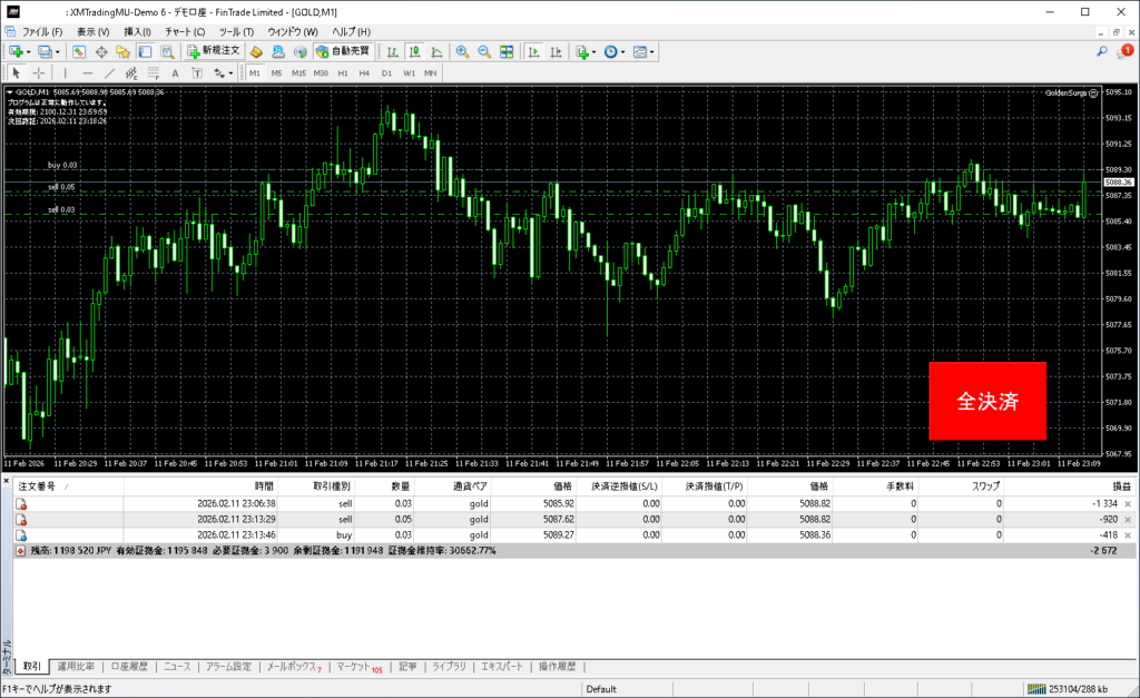 昨日のGolden Surgeトレード結果:2026年2月11日(水)デモトレード