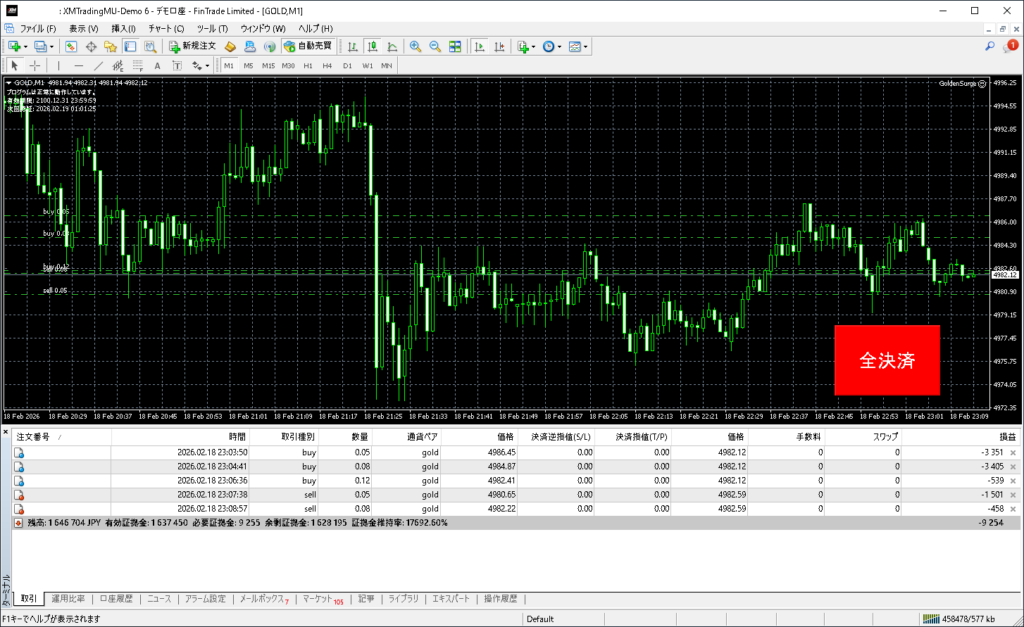 昨日のGolden Surgeトレード結果:2026年2月18日(水)デモトレード
