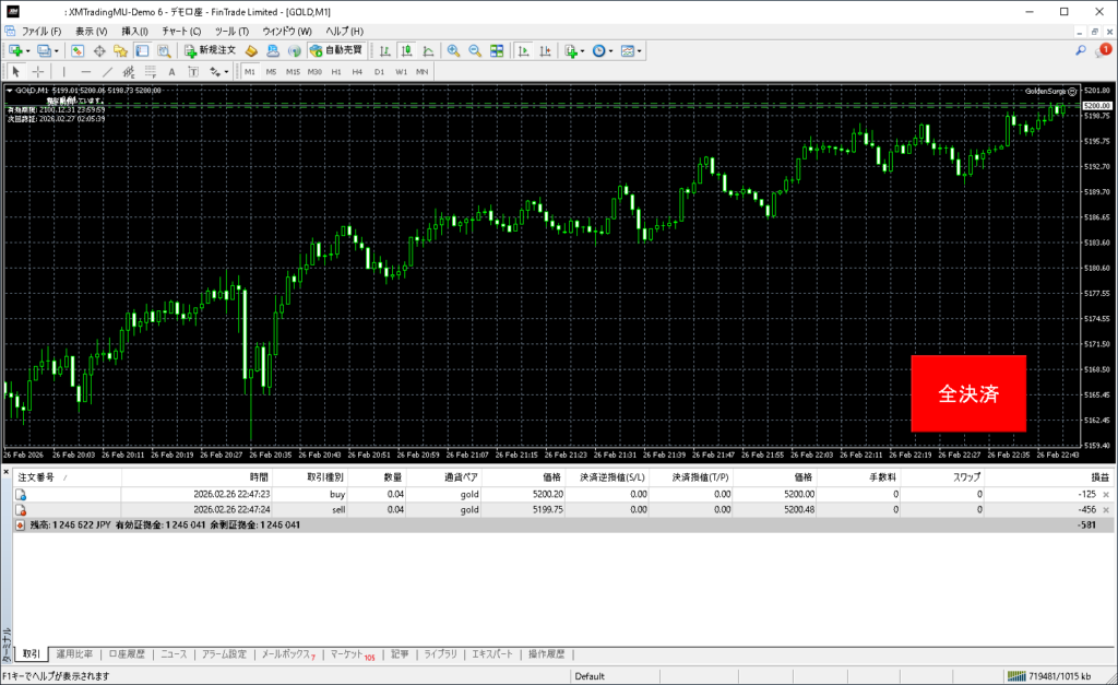 昨日のGolden Surgeトレード結果:2026年2月26日(木)デモトレード