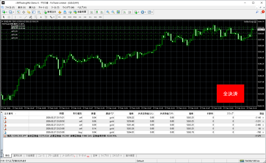 昨日のGolden Surgeトレード結果:2026年2月27日(金)デモトレード